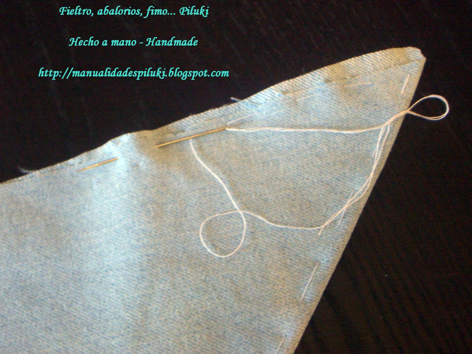 4.- y continuando por el lateral izquierdo, dejando así un lado del triángulo sin coser.